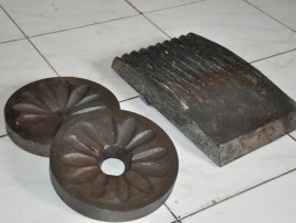 kami menyediakan spare part untuk pisau Jaw crusher 5 x 8 inch dan piringan disc mill pulverizer ukuran dia. 8 inch.